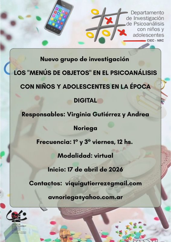 Los invitamos a relevar de la experiencia clínica interrogantes, hipótesis, enseñanzas para animar y avanzar en la investigación en el Departamento de Investigación y psicoanálisis con niños y adolescentes del CIEC.